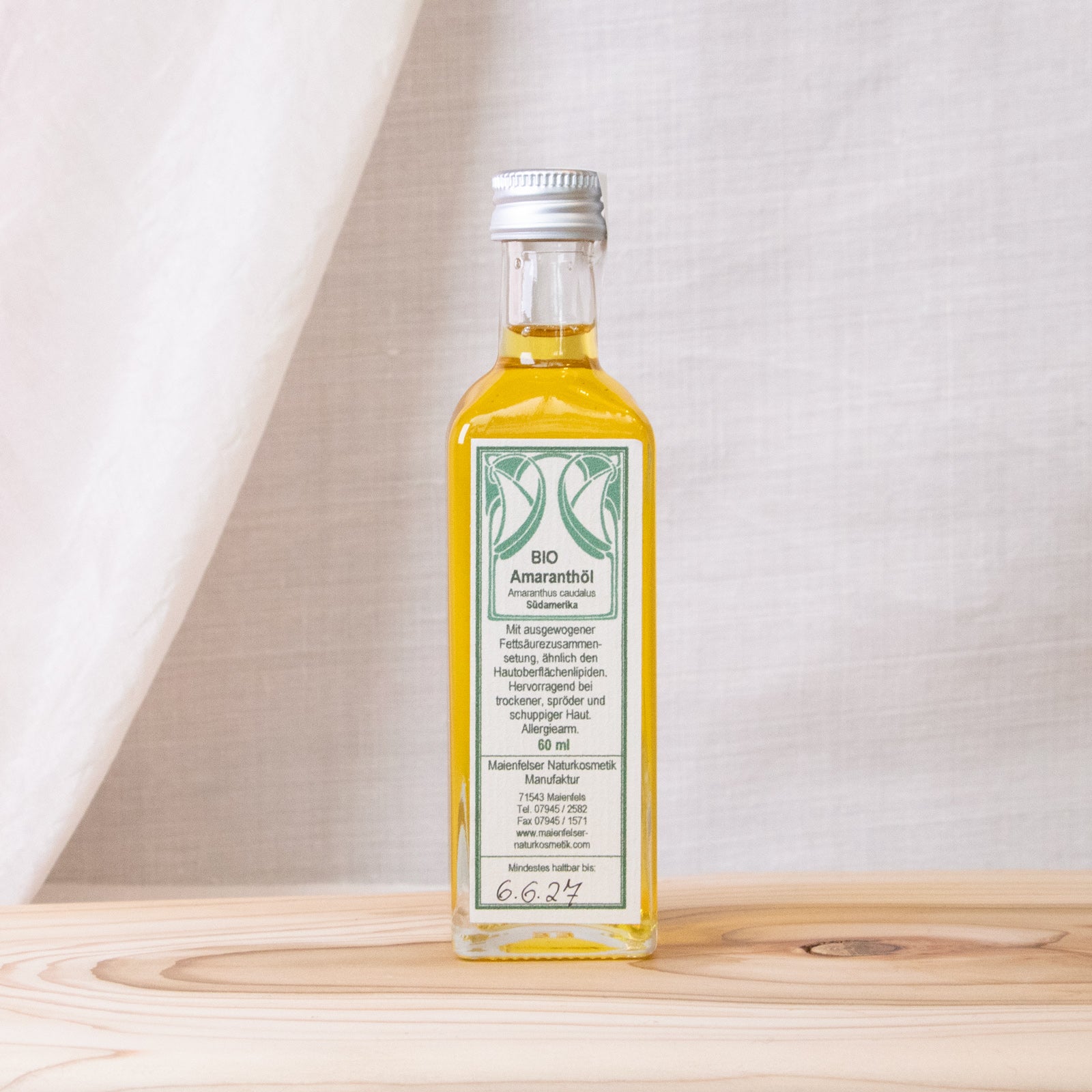 Aufgrund des relativ hohen Gehalts an Squalan (hautfettähnliche Lipidfraktion), den Sterolen und Tocopherolen (Großteil Vitamin E) und der ausgewogenen Ölsäurezusammensetzung kommt Amaranthöl den Hautoberflächenlipiden außergewöhnlich nahe und ist dadurch allergiearm und wird gut aufgenommen. Das heißt, im Zusammenwirken mit der arteigenen Vitaminfraktion, dem Squalan und der antioxidativen Wirkung, - wird eine UV-Zerstörung auf der Haut weitgehend vermindert (Radikalfänger).
