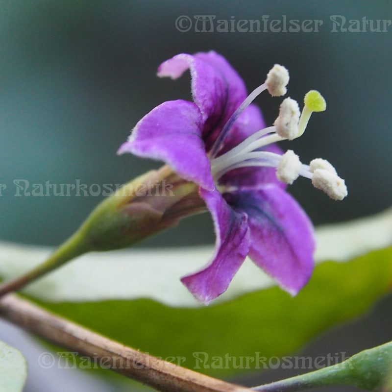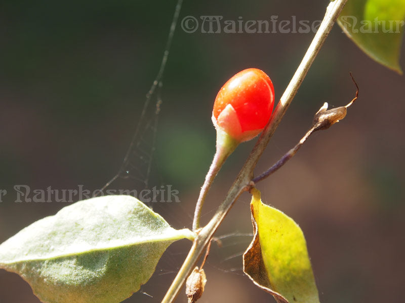 Nun, die rote Gojibeere hat ja inzwischen einen wahren Siegeszug hinter sich. Über Tibet und China ist sie inzwischen auch bei uns häufig anzutreffen. Die Chinesische Wolfsbeere ist ein grüner Strauch mit stacheligen herabhängenden Ästen, an denen sich ab August bis Oktober leuchtend rote bis orangefarbige, bis 1 cm große eiförmige Früchte befinden. In dieser wohlschmeckenden Frucht sind ca. 5 bis 20 braungelbe runde Kerne (Samen). Die ganze Frucht und auch die Kerne enthalten eine große Vielzahl an wertvollen Vitaminen, Mineralstoffen und sekundären Pflanzenstoffen. Das Öl ähnelt in seiner Ölsäurezusammensetzung dem Traubenkernöl mit ein paar Besonderheiten.