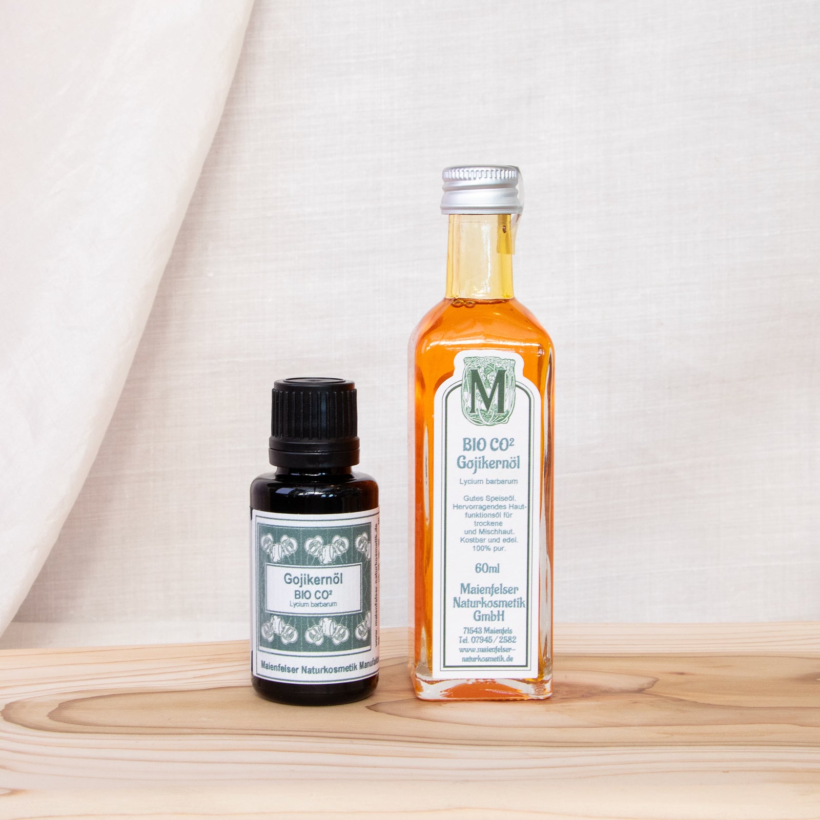 Kosmetische Verwendung: Durch den hohen Anteil an ungesättigter Linolsäure ein hervorragendes Hautfunktionsöl. Auch die gamma-Linolensäure und die sekundären Pflanzenstoffe mit über 3 % stellen das orange-gelbe Gojikernöl in die höhere Kategorie. Es ist sowohl für trockene empfindliche wie auch für Mischhaut bestens geeignet. Ein sehr kostbares, edles Hautöl.