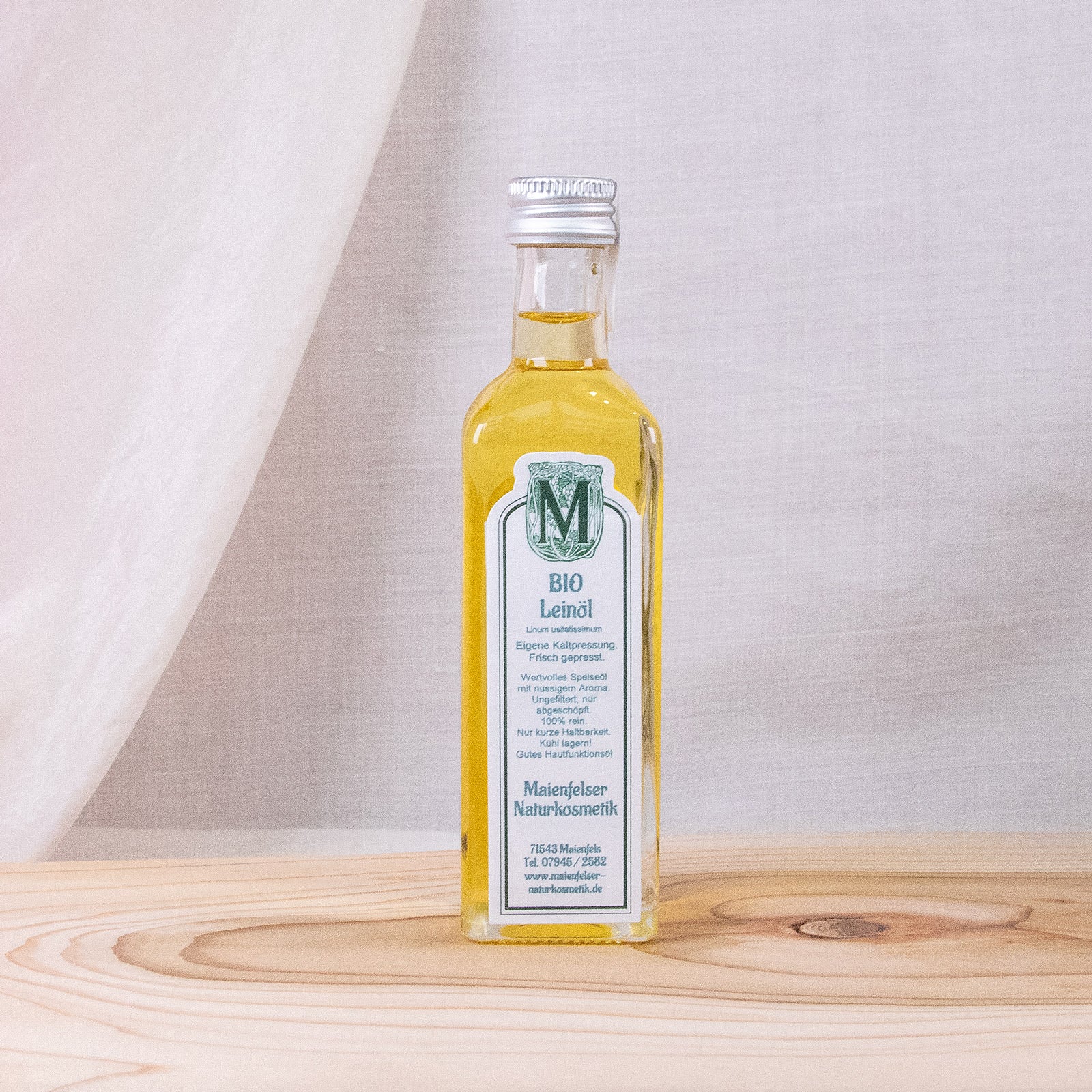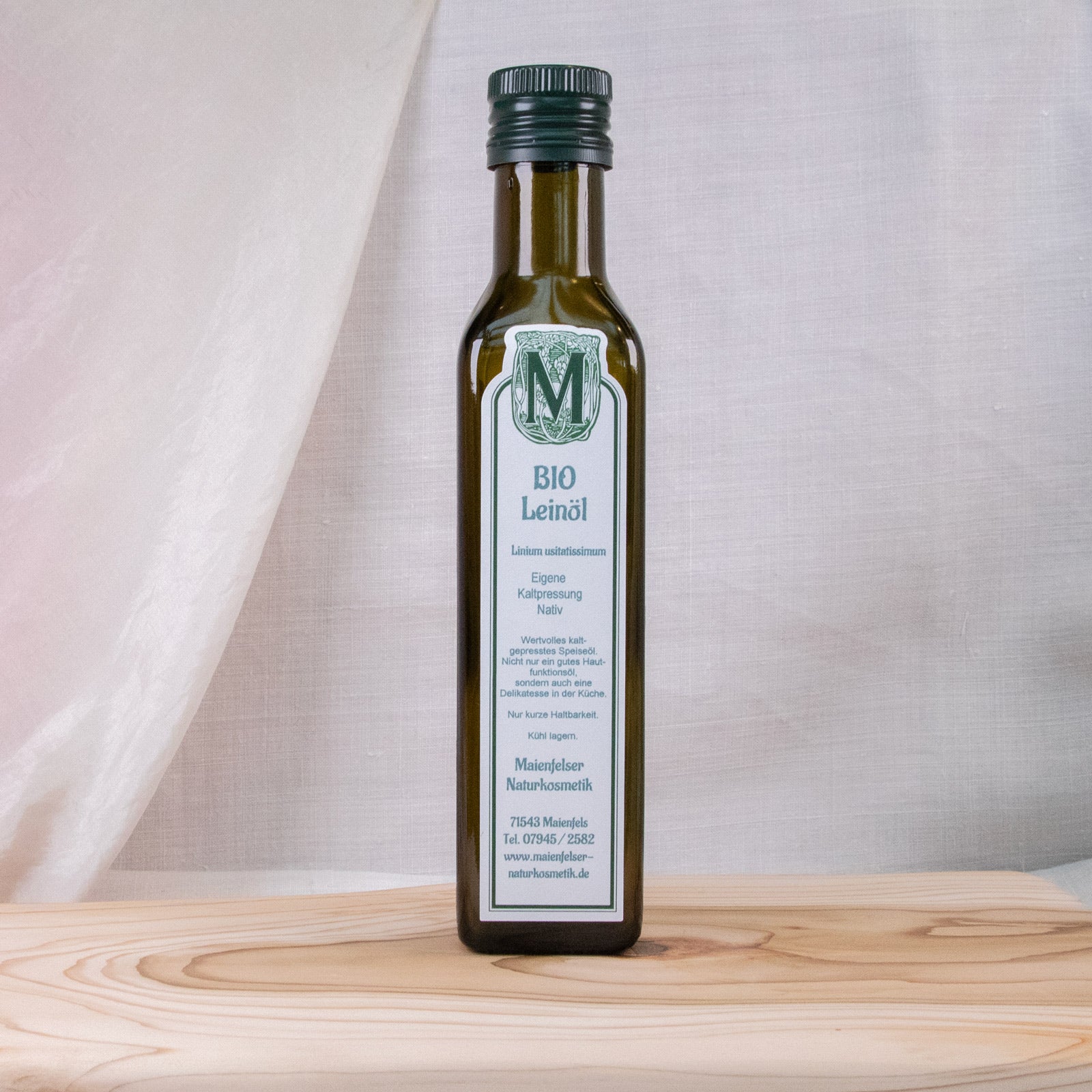 Kosmetische Verwendung: Durch die kurze Haltbarkeit scheut sich jeder Hersteller davor, Leinöl als Rohstoff mit in die Kosmetik einzuarbeiten. Jedoch gilt Leinöl als gutes Hautfunktionsöl, wenn es frisch ist. Durch den hohen Alpha-Linolengehalt hat es einen zellregenerierenden Effekt und ist hervorragend bei trockener und empfindlicher Haut geeignet.