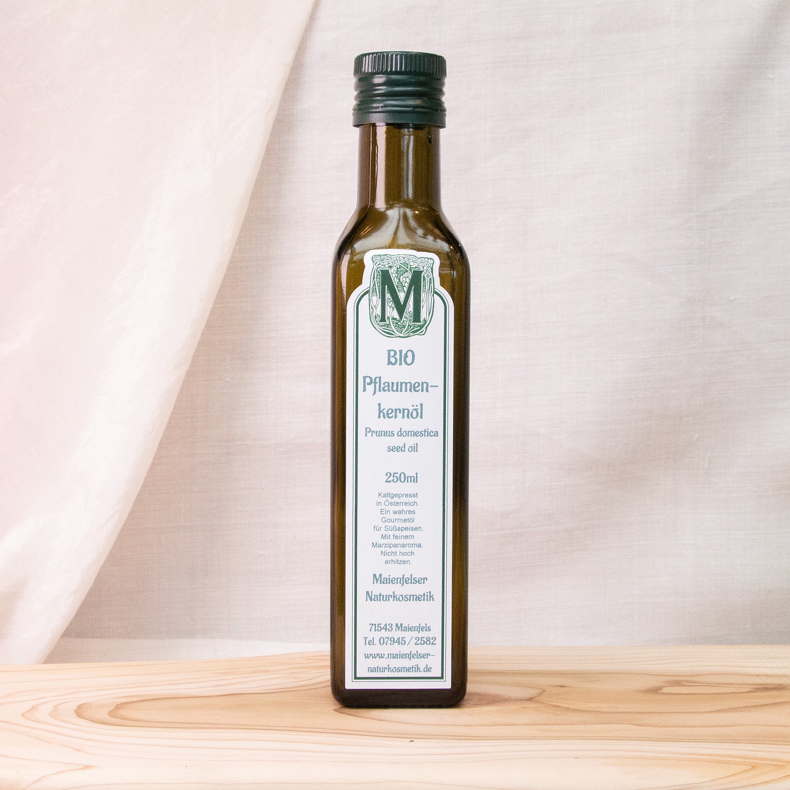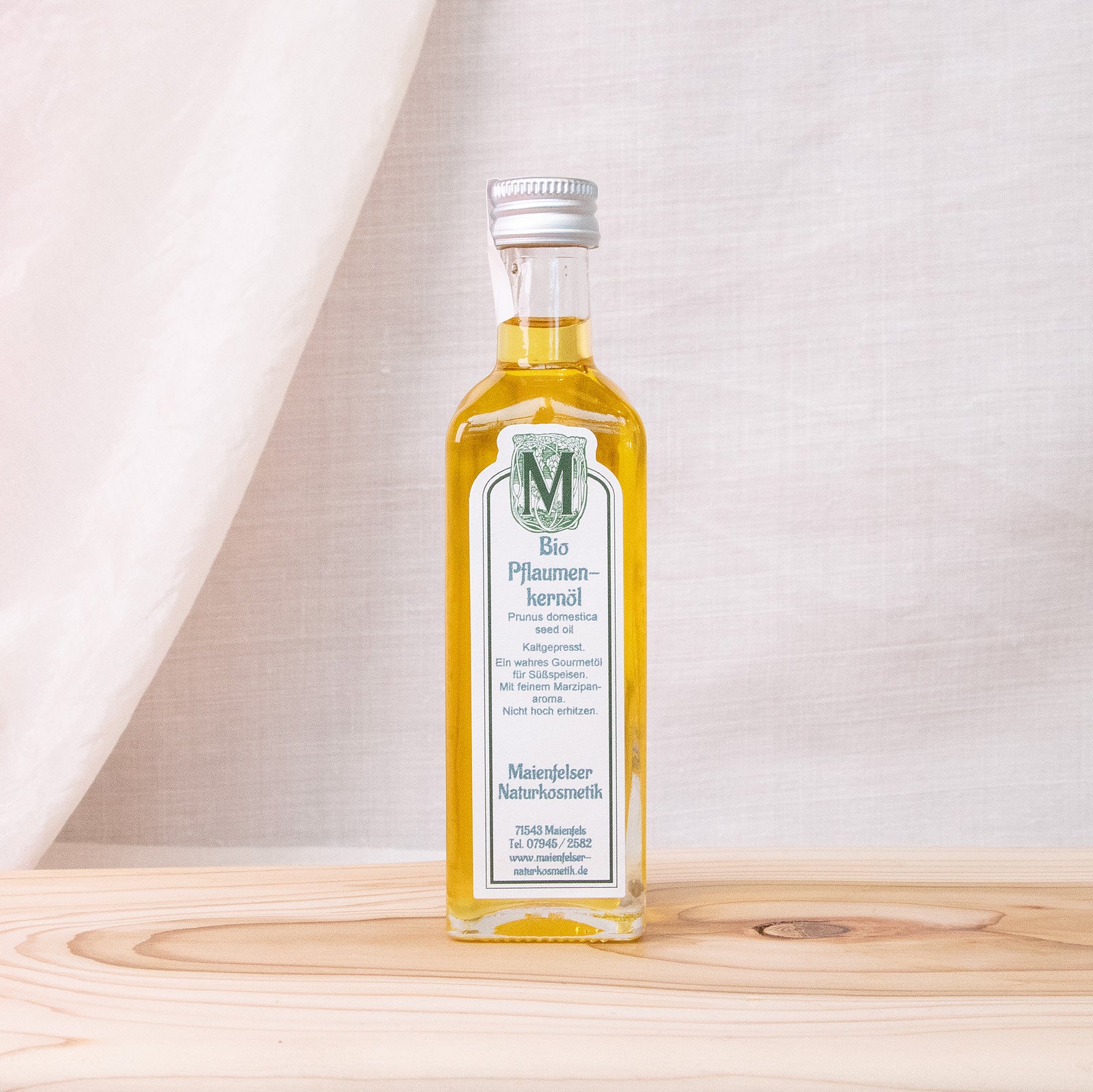 Wir haben eine neue Ölmühle in Österreich gefunden, die uns regionale, vor Ort angebaute Pflaumen die uns die Kerne in schonender Weise zu einem wundervollen Kernöl in Kaltpressung liefert. Dieses Pflaumenkernöl hat wie fast alle Kernöle einen Marzipangeschmack und eignet sich hervorragend für den kulinarischen Bereich. Der enthaltene Blausäuregehalt wird beim Pressen mit einer besonderen Technik neutralisiert. In Süßspeisen, Kuchen, Gebäck und in der kalten Küche ein wahres Gourmetöl. Und nicht zu vergessen. Der hohe Anteil an den mehrfach ungesättigten Fettsäuren, Proteinen, Mineralstoffen und Vitaminen, den Anthocyanen und Tocopherol macht dieses Öl zudem zu einem wertvollen Lebensmittel und ist ernährungsphysiologisch als sehr hochwertig anzusehen.