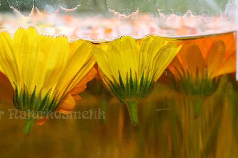 In Sesamöl kontrolliert biologischer Anbau eingelegte Ringelblumenblüten kbA werden der Sonne ausgesetzt und 2-3 Monate ziehen gelassen. Die Kraft der Sonne lässt die öllöslichen Wirkstoffe in das Öl übergehen. Voll getankt mit der Energie der Sonne ein mildes, neutrales Basis- oder Körperöl und ein wertvoller Bestandteil in unserer Kosmetik.