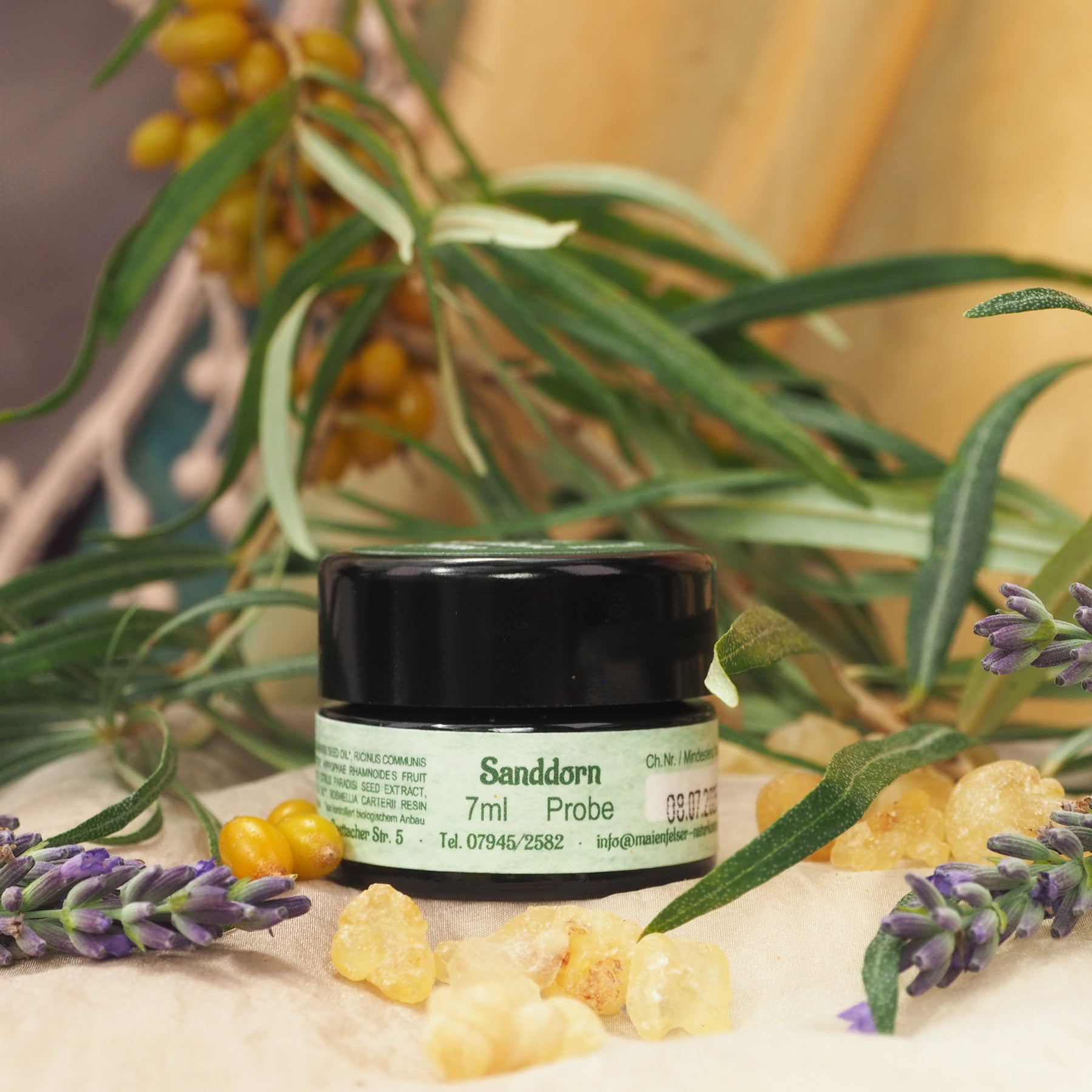Unsere Sanddorncreme ist für jeden Hauttyp geeignet. Sie gehört zu den nährenden Feuchtigkeitscremes, bestens bei kaltem Extrem- oder Sonnen(schein)wetter und sowohl im Winter, wie auch im Sommer sind die Sanddornauszüge durch den Carotinoiden- bestandteil UV hemmend und dadurch auch leicht tönend. Beste Pflege, wenn man sich den ganzen Tag im Freien aufhält.
