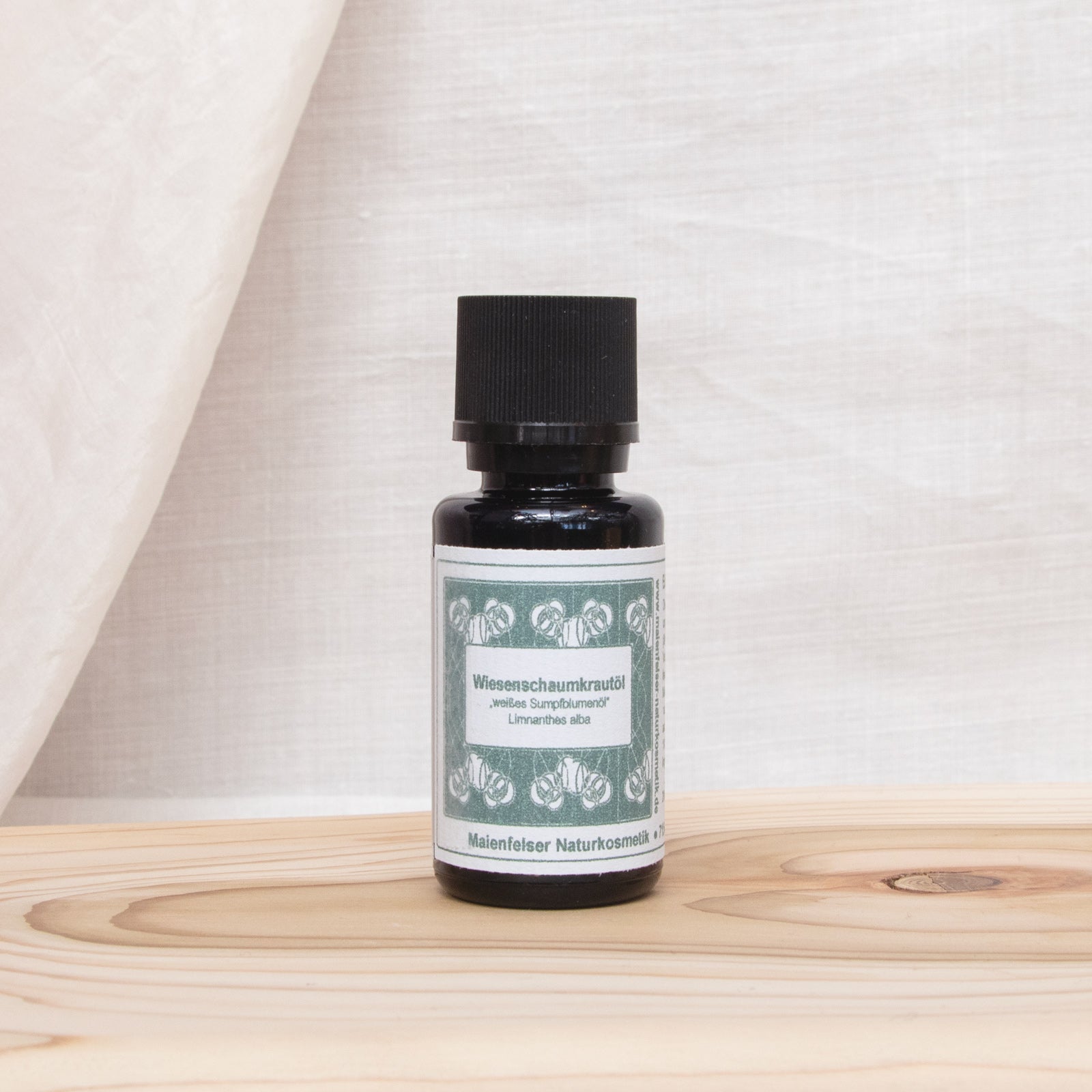 Korrekterweise müsste es 'Sumpfblumenöl' heißen, weil unsere Wiesenschaumkrautpflanze, die im Frühjahr oftmals pinkfarbig blühend weit verbreitet ist, nicht identisch ist mit dem amerikanischen Wiesenschaumkraut. Leider ist der Name 'Meadowfoam' patentrechtlich geschützt und so nenne ich es weiterhin 'Wiesenschaumkrautöl', auch weil es unter diesem Namen weit verbreitet ist. Das weiße Wiesenschaumkraut wird hauptsächlich in den USA (Oregon, Kalifornien) angebaut und blüht, wie der Name schon sagt, weiß. Wenn ein Wind die Millionen weißen Blütenköpfchen vor sich herwiegt, sieht es aus wie Schaumkronen auf dem Meer. Das Öl ist von außergewöhnlicher Eigenart. Es zählt durch 97 % der langkettigen ungesättigten Fettsäuren zu den stabilsten antioxidativen Pflanzenölen überhaupt (ähnlich dem Jojobaöl). Trotz seines hohen Molekulargewichtes ist es bei Zimmertemperatur flüssig.